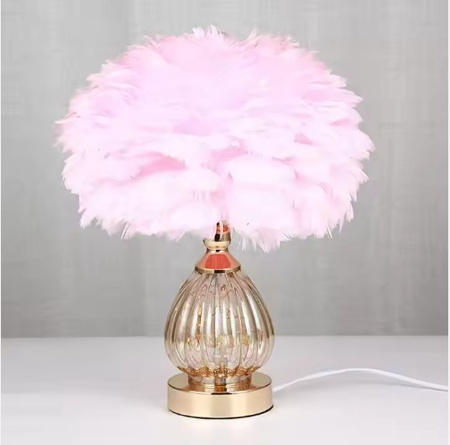 Add a whimsical yet elegant touch to your décor with this enchanting pink feather shade table lamp, featuring a sparkling crystal-design metal base. With its dreamy silhouette and refined craftsmanship, it’s the perfect lighting accent for your living room, bedroom, or chic vanity.